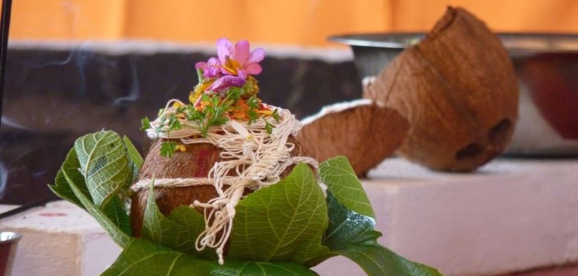 Nota: Pode trazer uma estátua que represente uma divindade à sua escolha, ou qualquer outro objecto de culto, se desejar que recebam Abishekam (ablução).
